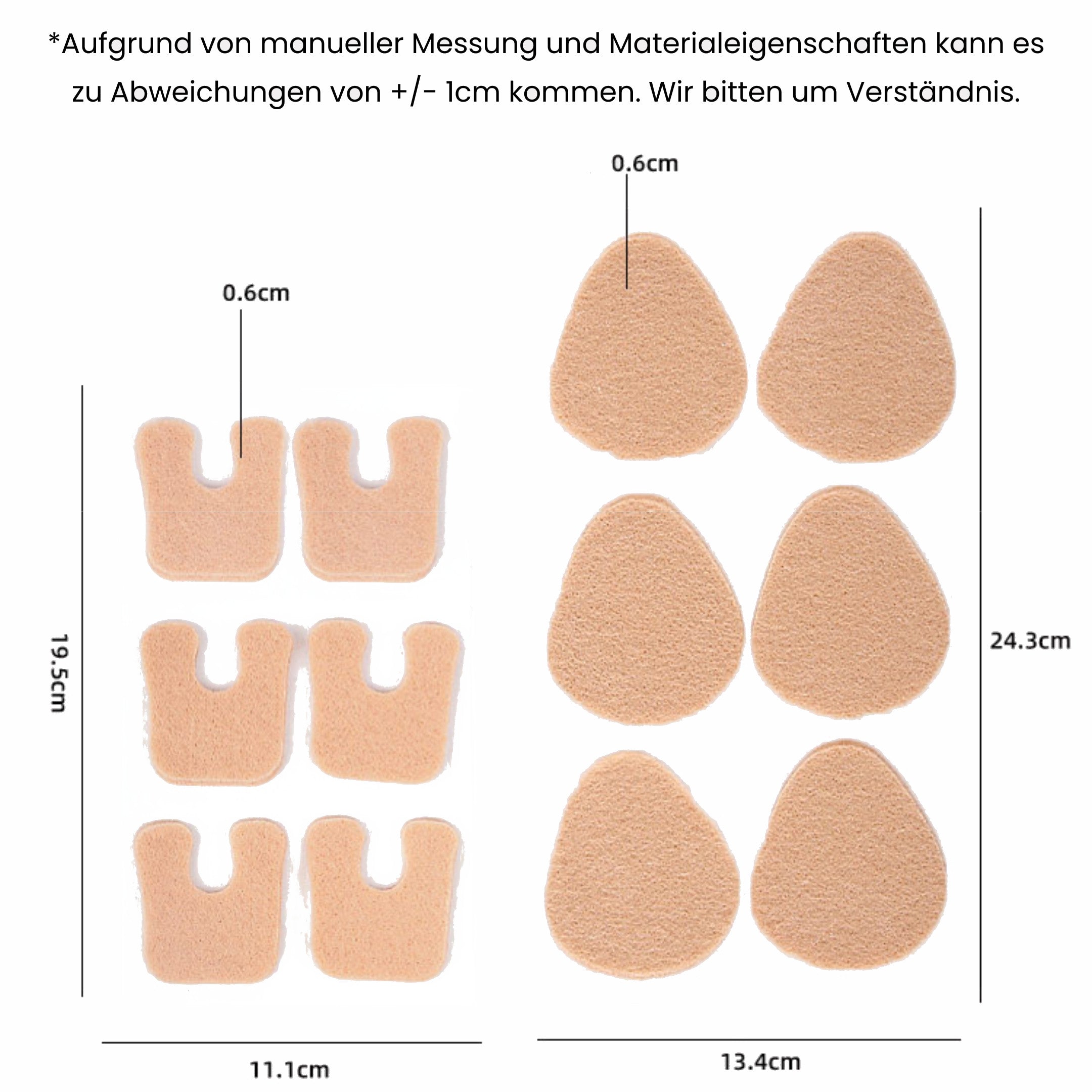 Die Pads lindern gezielt Druck- und Reibungsschmerzen, ideal bei empfindlichen Stellen, Hühneraugen, Blasen, Druckstellen oder gereizten Bereichen im Schuh.