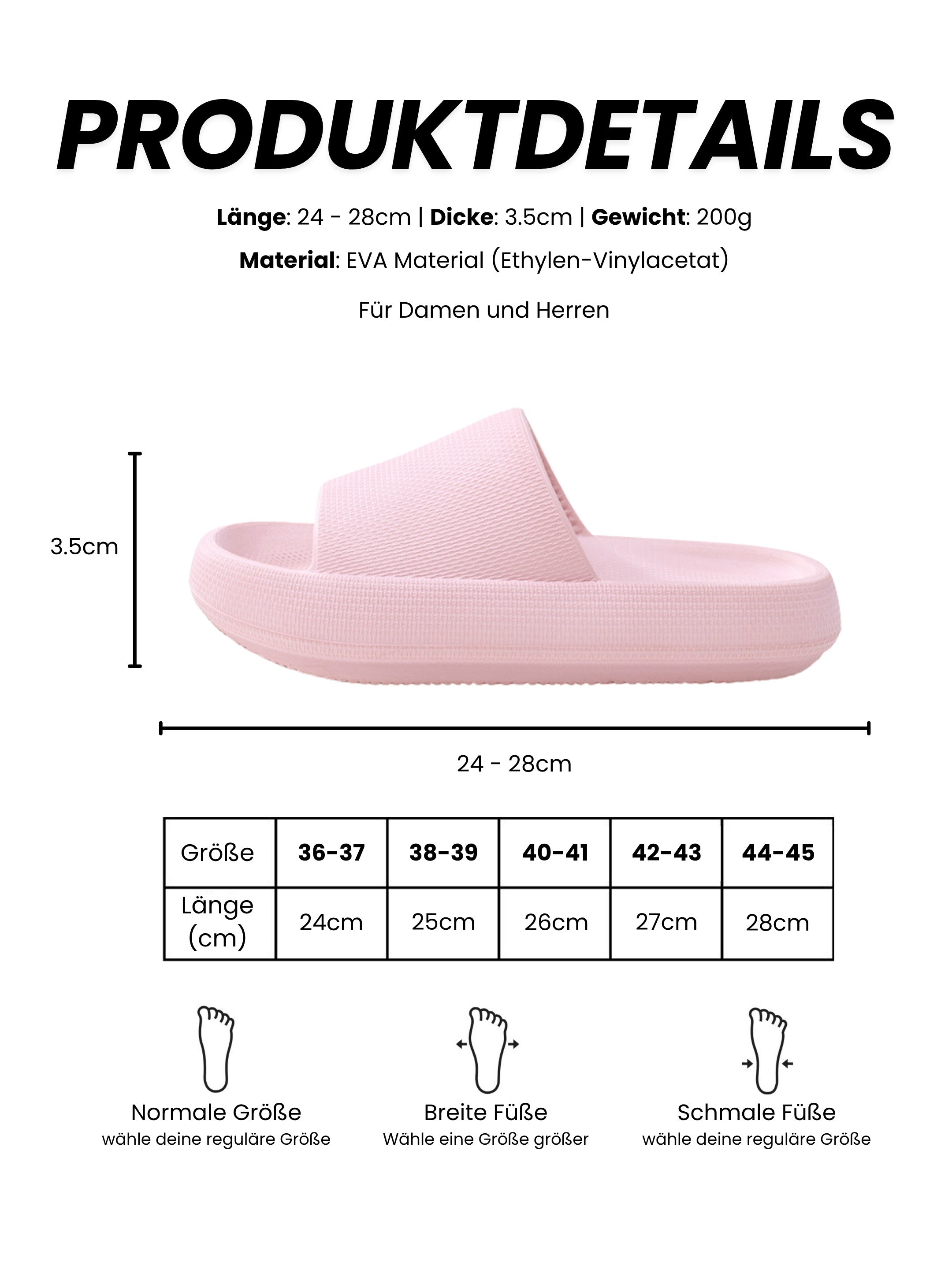 Ja. Dank der dicken Sohle und der weichen EVA-Dämpfung werden deine Fußsohlen entlastet, Stöße abgefangen und Verspannungen reduziert. Viele Käufer nutzen sie bei Fersenschmerzen, Plattfüßen oder allgemeiner Fußermüdung.