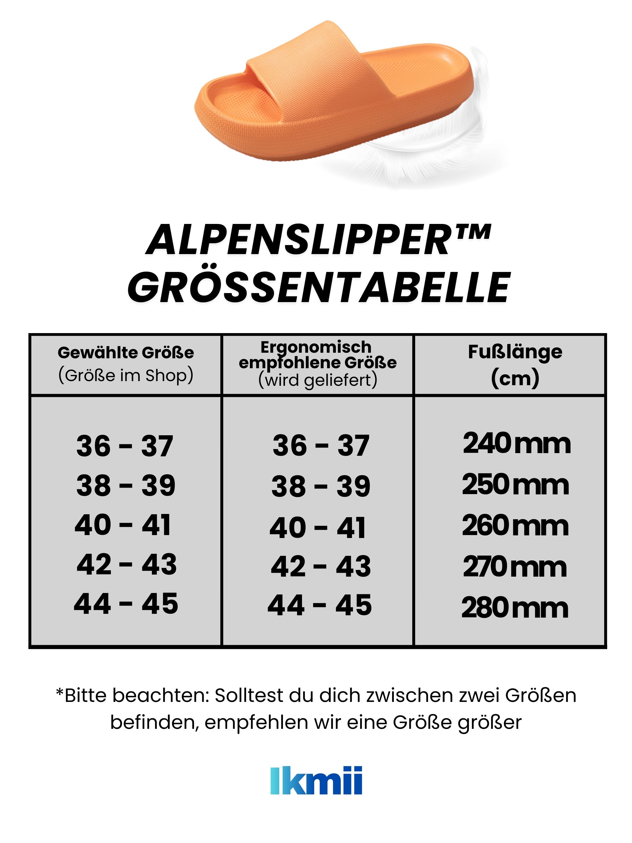 Dadurch eignen sich die Alpenslipper™ perfekt für empfindliche Füße, Indoor- und Outdoor-Bereiche sowie längeres Stehen und Gehen.