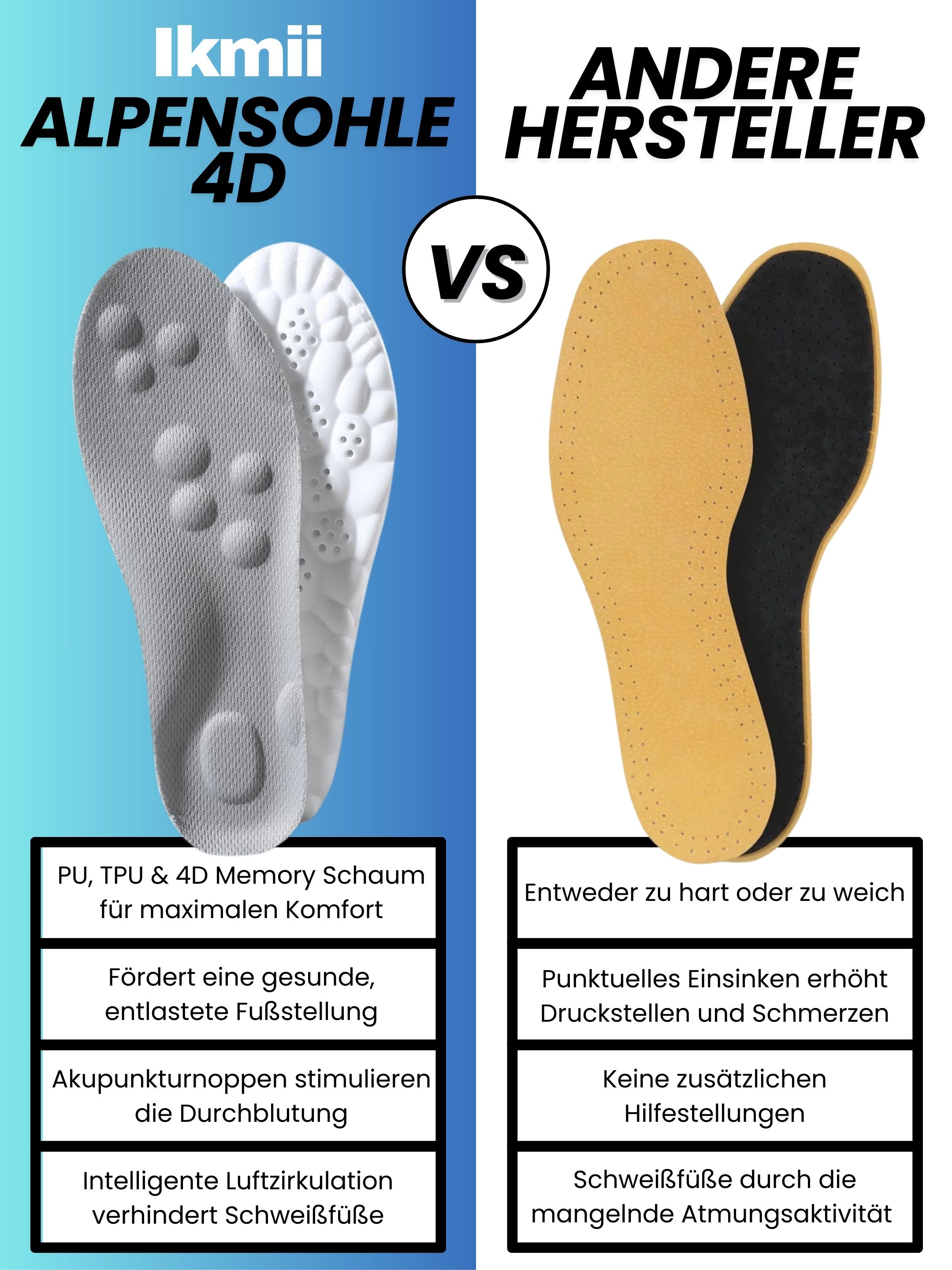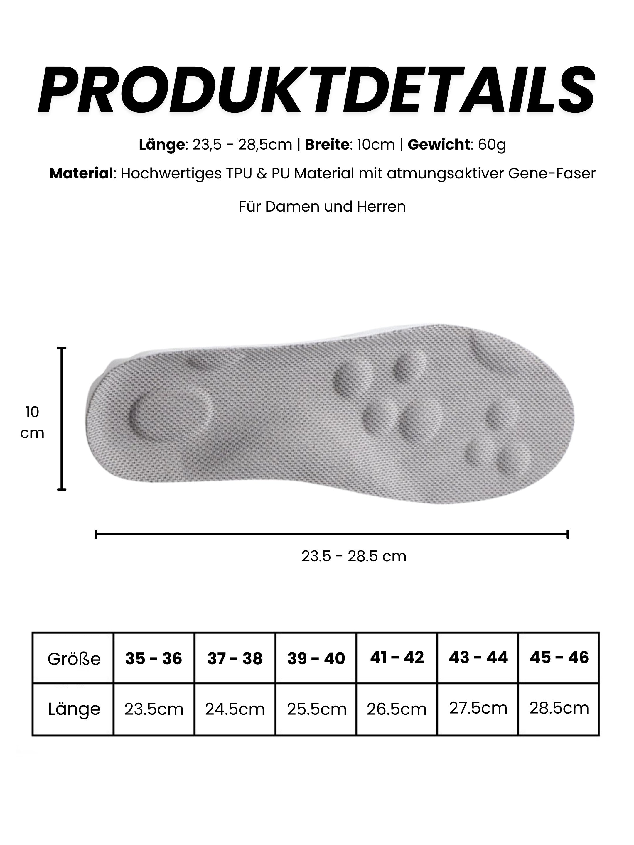 ✅ 4D-Memory Schaum, der sich bei jedem Schritt dem Fuß anpasst und für eine gleichmäßige Druckverteilung sorgt