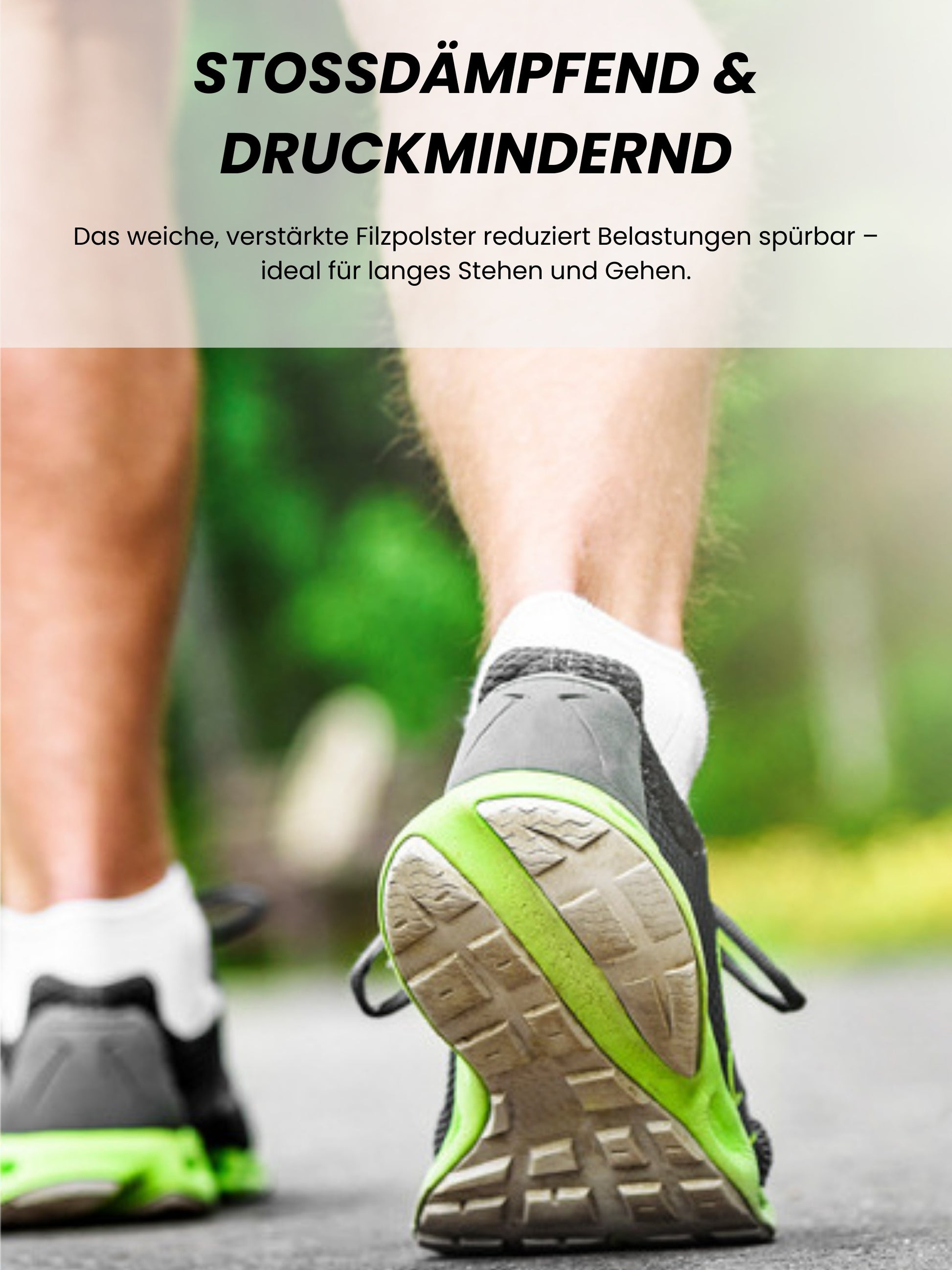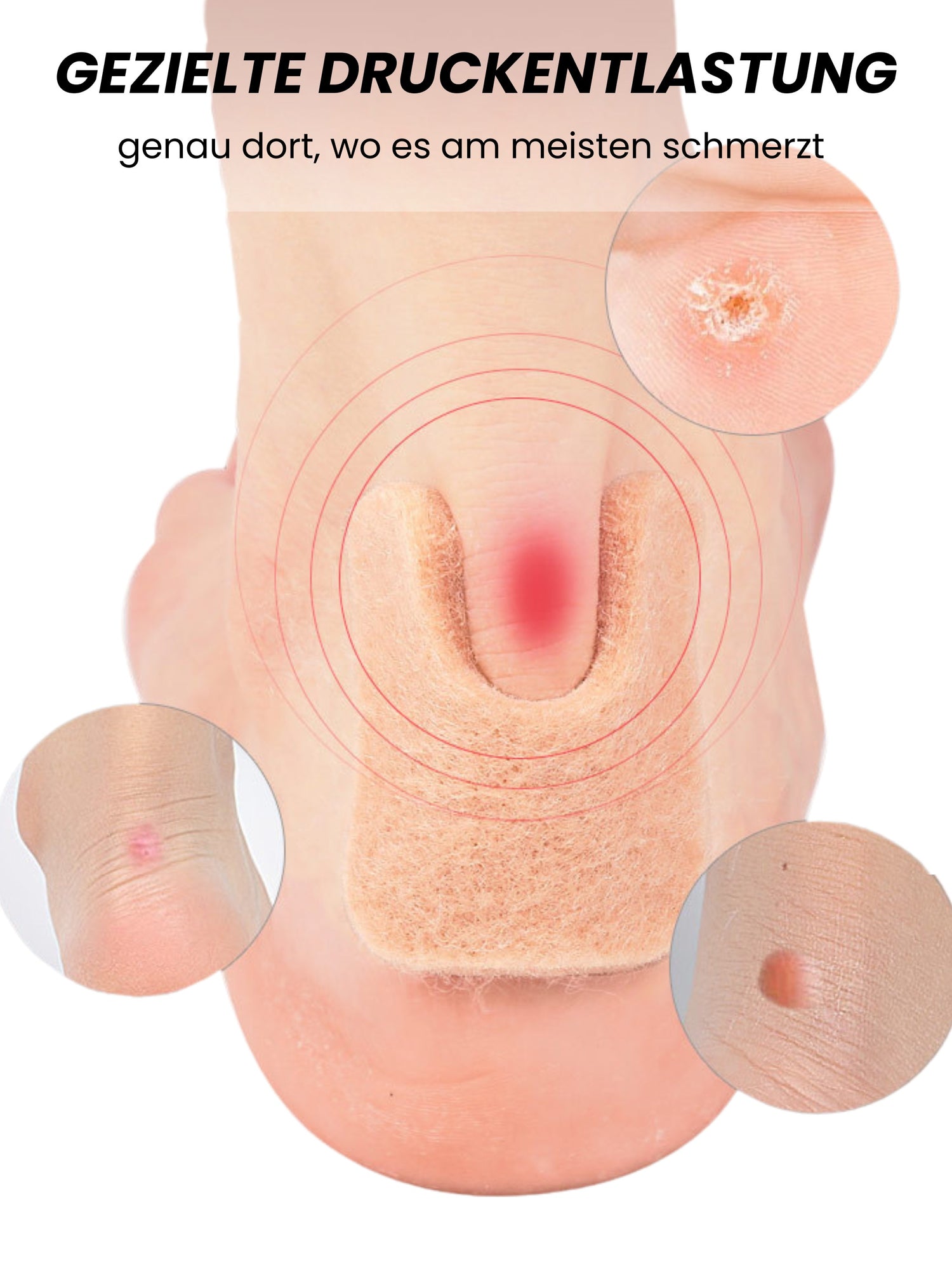 Filz Polsterpads sind weiche, selbstklebende Einlagen aus Filz, die direkt am Fuß oder im Schuh angebracht werden. Sie schützen empfindliche Stellen vor Reibung, Druck und Blasenbildung.