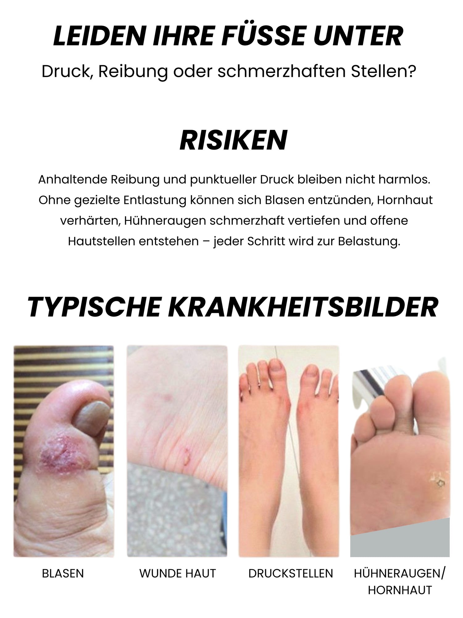 Ja. Die Pads können problemlos innen in den Schuh geklebt werden, z. B. an Ferse, Ballenbereich oder Seitenwänden. Oder auf der Haut, um empfindliche Bereiche vor Reibungen im Schuh zu schützen.