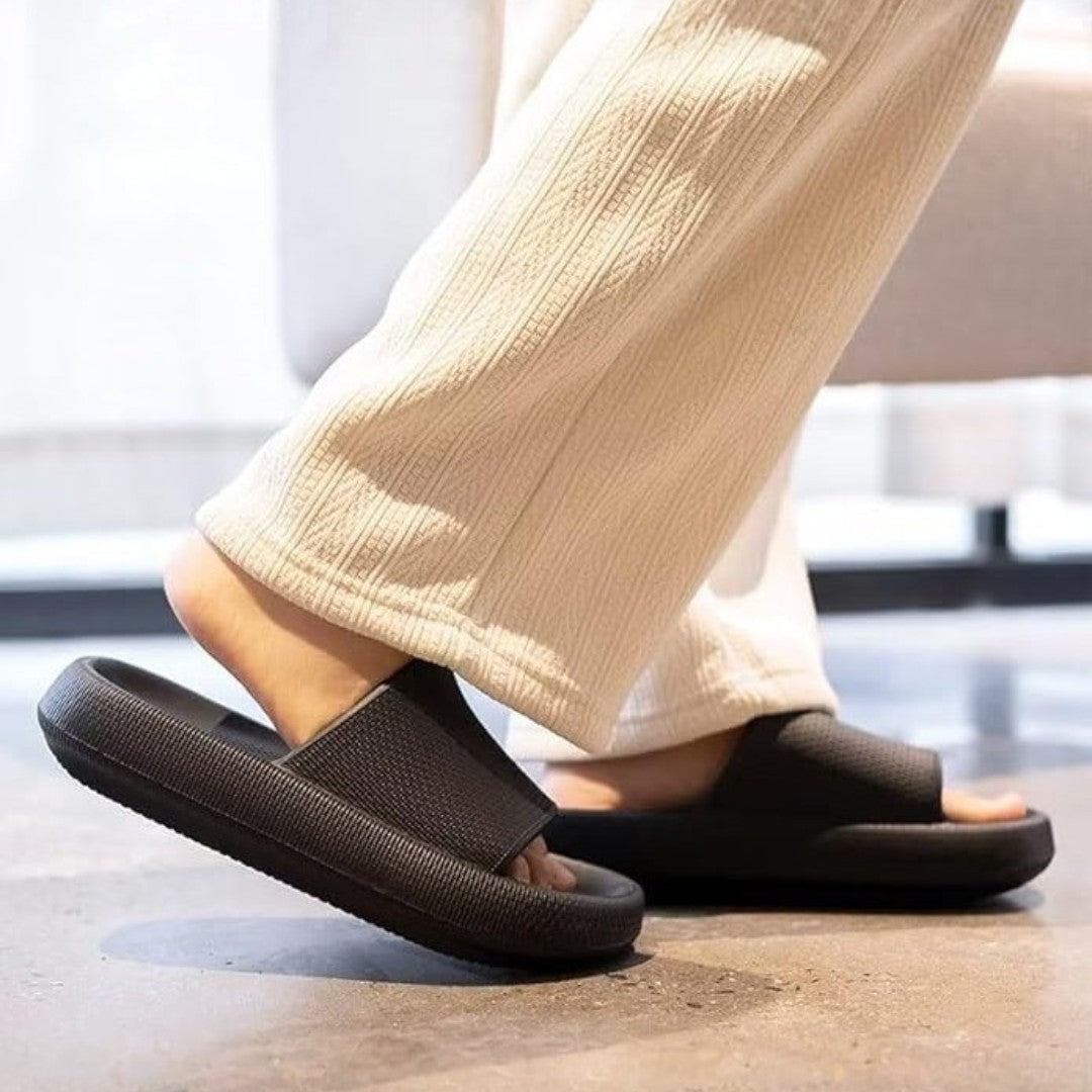 Die rutschfeste EVA-Sohle bietet sicheren Halt auf glatten Böden, während das leichte Material ideal für kurze Wege und den Alltag ist.